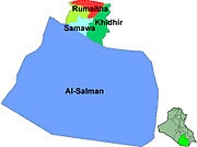 ويحدها من الجنوب المملكة العربية السعودية ، ومن الشرق محافظة ذي قار .