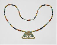 • 1 عقد من خرز اللازورد المستدير بما في ذلك: 28 خرزة مدورة من اللازورد ، [و] 29 خرزة مخددة للإبزيم. [28]