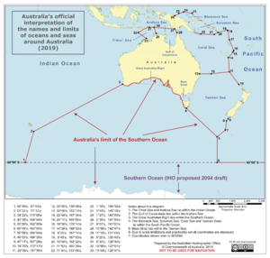 تعتبر الحكومة الأسترالية أن المحيط الجنوبي يقع جنوب أسترالياً مباشرة (انظر