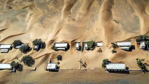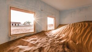 ![]() "البلدة القديمة" أو "بلدة الأشباح في المدام" مغطاة بالكثبان الرملية | |
