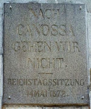 الطريق إلى كانوسا، وأحياناً تُسمى المسير إلى كانوسا (ألمانية: Gang nach Canossa/Kanossa)[1] أو إذلال كانوسا (إيطالية: L'umiliazione di Canossa)، يشير إلى المسيرة التي قام بها الملك الألماني هنري الرابع إلى إيطاليا في أوج جدل التنصيب في يناير 1077. ذهب هنري إلى قلعة كانوسا، حيث أقام الپاپا گريگوريوس السابع ضيفاً على المارگراڤين ماتلدا من توسكانيا، للحصول على revocation of the anathema imposed on him. According to contemporary sources, he was forced to humiliate himself on his knees waiting for three days and three nights before the entrance gate of the castle, while a blizzard raged.