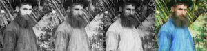 قنوات الألوان الحمراء والخضراء والزرقاء لصورة ضوئية التقطها سرگي پروكودين-گورسكي. الصورة الرابعة مركـَّبة.