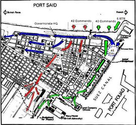 وعندما بدأ الأنزال البرمائى في الصباح المبكر "الساعة السادسة وأربعون دقيقة ..يوم الثلاثاء 6 نوفمبر ... كانت نقاط القناصة كمينا قاتلا ... وقتل العديد من لجنود الكتيبة 40 والكتيبة 42 " كـوماندو رويال مارين" البريطانية ...