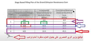 وعلى الرغم من رفض إثيوبيا التوقيع على هذا الجدول وتركت جلسة المفاوضات بالبيت الأبيض إلا أنها من حيث المبدأ تلتزم بالكميات المذكورة في الجدول ولسوف تصل بمخزون بحيرة سد النهضة خلال الملء الرابع لقرابة (49 مليار متر مكعب). وعليه فإدعاء الدولة المصرية بان إثيوبيا تنفذ الملء الرابع بدون (إذن مسبق) هو إدعاء (كاذب) تماما والدليل على ذلك توقيع وزير الري السابق على جدول الملء أمام الرئيس الأمريكي دونالد ترمپ شهر فبراير 2020.