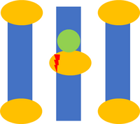 A two-beam interference pattern (half-pitch <0.5 λ/NA) forms a set of regularly spaced lines. Breaks in such lines, e.g., brick patterns, are deviations from the interference pattern. Such breaks generally do not dominate the pattern, and are thus small deviations. These deviations are insufficient to completely offset the constructive or destructive interference of the underlying regular line pattern; sidelobes often result.[38][39] Line end gaps are easily bridged under dipole illumination.[40] Another mask exposure (usually referred as a cut mask) is therefore necessary to break the line pattern more robustly.