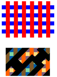 The most basic example is horizontal dense lines vs. vertical lines (half-pitch < 0.35 λ/NA), where the former requires a North-South dipole illumination while the latter requires an East-West dipole illumination. If both types are used (also known as cross-quadrupole C-Quad), the inappropriate dipole degrades the image of the respective line orientation.[22] Larger pitches up to λ/NA can have both horizontal and vertical lines accommodated by quadrupole or QUASAR illumination, but diagonally spaced features and elbow features are degraded.[23][24]