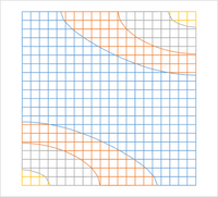 The use of SID may be applied to 2D arrays, by iteratively adding features equidistant from the previously present features, doubling the density with each iteration.[59][60] Cuts not requiring tight positioning may be made on this spacer-generated grid.[61]