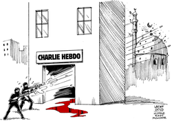 في 7 يناير 2015، عند حوالي الساعة 11:00 ت.و.أ. (10:00 ت.ع.، هاجم ثلاث رجال مقنعين المقر الرئيسي للصحيفة الفرنسية الساخرة شارلي إبدو في پاريس. تشير التقارير الأولية إلى مقتل 12 شخص وإصابة 10 آخرين.[3][4] دخل المسلحون المبنى وبدأوا بإطلاق النار من أسلحة آلية- وتشير التقارير إلى أنه أتم إطلاق أكثر من 50 طلقة.[5] ويعتبر هذا الحادث الأكثر دموية في فرنسا وثاني أسوأ هجوم في العالم في وقت السلم، بعد الحادث المذكور.[5][6][7]