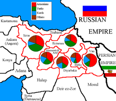 Note: The analysis excludes certain portions of these provinces where Armenians are only a minor element. These portions are as follows: Hakkiari, in the Vilayet of Van; the south of Sairt, in the Vilayet of Bitlis; the south of the Vilayet of Diyarbekir; the south of Malatia, in the Vilayet of Mamuretülaziz; the north-west and west of the Vilayet of Sivas.[2]