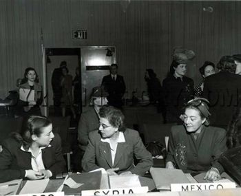 إختارها فارس الخوري لتكون ممثلة سورية في الأمم المتحدة، فكانت أول سيدة عربية مثّلت بلادها في المنظمة الدولية وإحدى أوائل السيدات على صعيد العالم فيها. ( الصورة لها عام 1948).