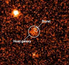 وكان موقع التوهج المتعقب للانفجار منزاحا بوصوح عن مركز المجرة العائية مما يلغي احتمال أن يكون الانفجار صادرا من حويصلة مجرة نشطة. ثم عُين الانزياح الأحمر لطيف المجرة وقُدر ب z = 0.695، [15] وهذا يعني بعدها عنا بنحو 1و8 مليار سنة ضوئية [3] وبأخذ تلك المسافة في الحسبان واعتبار أن الانفجار كان متساويا في جميع الاتجاهات فيمكن حساب الطاقة المنطلقة من الانفجار بنحو 5.2×1044 جول. [22]