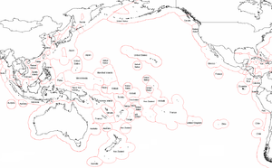 وتشمل أجزاء من ثلاثة قارات جيولوجية، أوراسيا، أستراليا، وزيلاندا، وكذلك الغير القارية كالجزر البركانية في الفلبين، ووالاكيا والمحيط الهادئ المفتوح.