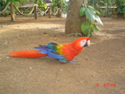 ببغاء من نوع المكاو يقف على الأرض