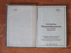 Since West Berlin was not a sovereign state, it did not issue passports. Instead, West Berliners were issued with "auxiliary identity cards" by the West Berlin authorities. These differed visually from the regular West German identity cards, with green bindings instead of the grey standard, they did not show the "Federal Eagle" or coat of arms, and contained no indications as to the issuing State. However, they did have a statement that the holder of the document was a German citizen.[25] From 11 June 1968, East Germany made it mandatory that West Berlin and West German "transit passengers" obtain a transit visa, issued upon entering East Germany,[26] because under its second constitution East Germany considered West Germans and West Berliners foreigners. Since identity cards had no pages to stamp visas, issuers of East German visas stamped their visas onto separate leaflets which were loosely stuck into the identity cards, which, until the mid-1980s, were little booklets. Although the West German government subsidized visa fees, they were still payable by individual travellers.[21]