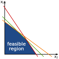 إن حل البرنامج السابق يعني إيجاد القيمة الحقيقية التي تعطي التابع قيمة أعظميه (قيمة مثلى للتابع) على منطقة القيود، التي تسمى عادة منطقة الإمكانات. أما إذا أردنا أن نفتش عن النقطة (قيم مثلى للمتحولات) من منطقة الإمكانات، والتي توافق القيمة فنكتب المسألة على الشكل التالي: