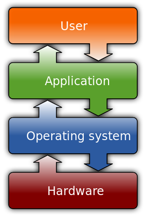غالبًا ما يرى مستخدمو الكمبيوتر الأمور بصورة مختلفة عن المبرمجين. فالأشخاص الذين يستخدمون أجهزة الكمبيوتر الحديثة الخاصة بالأغراض العامة (في مقابل النظم المضمنة وأجهزة الكمبيوتر التناظرية وأجهزة الكمبيوتر كبيرة الحجم وفائقة السرعة ...إلخ) عادةً ما يصنفون برامج الكمبيوتر التي تؤدي مهام متنوعة في ثلاث طبقات وهي: برامج نظم التشغيل وبرامج التطبيقات وبرامج المستخدمين.