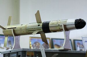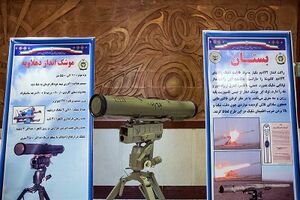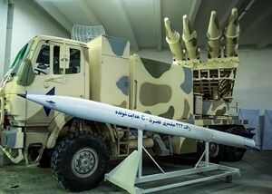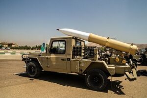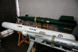 صاعقة: هو صاروخ إيراني يأتي بنسختين صاعقة 1 و2 ويُعتبَر صاروخ صاعقة من ضمن الصواريخ الإيرانية المضادة للدروع والذي يتميز بقدرة اختراق الدروع بسماكة 500 ملم وإصابة الأهداف الثابتة على بعد 1000 متر.[575] ان صاروخ صاعقة هو صاروخ قصير المدى مضاد للدروع يزن 14.5 كلغ ويمكن حمله بسهولة من قبل شخص واحد. ويمكن توجيه هذا الصاروخ سلكياً، ونظراً للدقة العالية في نظام التتبع يمكنه استهداف جميع الأهداف المتحركة والثابتة وبدقة 90 بالمئة. وأفادت وكالة تسنيم الدولية للأنباء بأن الخبراء الإيرانيين نجحوا حتى اليوم بتصميم وإنتاج أنواع من الصواريخ الموجهة المضادة للدروع. وصاروخ صاعقة هو أحد تلك الصواريخ.[576]