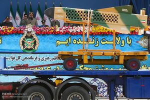 شهيد حاج قاسم: هو صاروخ باليستي إيراني الصنع، تفوق سرعته سرعة الصوت بـ12 مرة، ما يمكنه الإفلات من أي دفاع صاروخي.[444] يبلغ مدا هذا الصاروخ أكثر من 1400 كيلومتر، ويمكن زيادة هذا المدى إلى حوالي 1700 و 1800 كيلومتر.[445][446][447][448] ويتم تشغيله بمحرك يعمل بالوقود الصلب، وتُعَد محركات الصواريخ التي تعمل بالوقود الصلب من المجالات التي حققت فيها جمهورية إيران أداءً جيداً بشكل خاص في الآونة الأخيرة. في وقت سابق من عام 2020م، وقال الحرس الثوري الإسلامي، مسلطاً الضوء على نجاحاته، إن تقنيات الوقود الصلب تُستَخدَم في أنظمة الإطلاق الفضائية. مما لا شك فيه أن هناك إحتمال أن يَستَخدِم صاروخ "الحاج قاسم" جزء من هذه الإبتكارات الجديدة.[449] وقد تم إختباره ضد نظام دفاع صاروخي وقد نجا من الإعتراض. ان هذا السلاح الدقيق تماماً، والذي يتم إطلاقه بشكل مائل.[63] يبلغ وزنه 7 أطنان وبرأس حربي يزن 500 كيلوغرام، اما طوله فيبلغ 11 متراً.[65] وقد نشرت وسائل الإعلام الإيرانية، الخميس 22/8/2020، مقطع فيديو لمراحل تصنيع واختبار وإطلاق الصاروخ الباليستي الجديد "الحاج قاسم".[450] وتزامناً مع اليوم الوطني للصناعات الدفاعية وبرعاية الرئيس الإيراني حسن روحاني، تم الإعلان عن عدد من إنجازات وزارة الدفاع وإسناد القوات المسلحة الإيرانية في المجالات المختلفة والتي صُمِمَت وصُنِعَت على يد علماء وخبراء هذه الوزارة.[451] حيث أعلن وزير الدفاع الإيراني العميد أمير حاتمي، يوم الخميس 20/8/2020، عن التوصل إلى صنع صاروخ باليستي يعمل بالوقود الجامد أُطلِقَ عليه اسم الحاج قاسم، جنباً إلى جنب مع صاروخ كروز بحري بمدى 1000 كيلومتر باسم (أبو مهدي). وأشار حاتمي، خلال مراسم إزاحة الستار عن منجزات جديدة لوزارة الدفاع، إلى التقدم الكبير الذي حققته الصناعة الدفاعية في البلاد بعد إنتصار الثورة الإسلامية خاصةً خلال الأعوام الثلاثة الأخيرة إعتماداً على مبدئين أساسيين هما الإكتفاء الذاتي وتلبية حاجات البلاد"، وقال إن "أبو مهدي" هو صاروخ كروز بحري قادر على تخطي منظومات دفاع الأعداء، ويُطلَق من الأعماق وسيتم تزويد القوات البحرية به قريباً.[452]
