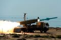 فجر 3: مع بداية التسعينيات، بدأت مجموعة الشهيد باقري الصناعية ومجموعة سنام الصناعية الإيرانية، تحت رعاية منظمة الصناعات الدفاعية الحكومية، العمل على نظام جديد لإطلاق الصواريخ، وكان من المقرر أن يؤخذ في الإعتبار جميع التجارب السابقة. وقد جرى إطلاق اسم فجر 3 على هذا المشروع. ان قاذفة الصواريخ فجر 3 تتكون من 12 قاذفة، ومثبتة على شاحنات مرسيدس بنز ونوع آخر من الشاحنات.[197] وبصورة عامة فإن صاروخ فجر 3، هو عبارة عن مدفعية صاروخية صُنِعَت عن طريق جمهورية إيران في عام 1990م، وهذا النظام عبارة عن جزء من أسرة فجر الصاروخية، وان أحدث إنتاج من فجر-5 محمل على مركبة (6×6)، وقد تم دمج المنصة إلى نظام سلاح كامل بدلاً من القاذفة الفردية. لتوفير منصة إطلاق أكثر إستقراراً، ويتم إنزال أربعة مثبتات هيدرولوكية على الأرض قبل الإطلاق.[198] ان صاروخ فجر-3، من الصواريخ ذو المرحلة الواحدة ومن عيار 240 ملم ويبلغ طول الصاروخ 5.2 متر ويزن 407 كغم ويبلغ مداه 43 كيلومتر. اما زنة الرأس الحربي لهذا الصاروخ فتبلغ نحو 85 كغم، وله قدرة تدميرية جيدة ويُستَخدَم لتدمير أهداف مثل مراكز القيادة ومراكز الدعم والثكنات وقواعد القوات المعادية بالإضافة إلى إصابة المطارات القريبة من خطوط القتال وأهداف أخرى. وقد حصل حلفاء إيران على صواريخ فجر 3، حيث يحتفظ حزب الله اللبناني بصواريخ فجر 3، بالإضافة إلى أنظمة مدفعية صاروخية أخرى غير موجهة، لإطلاقها على إسرائيل في حروبه معها. فصواريخ فجر 3 المرسلة إلى حزب الله مدعومة من الحكومة الإيرانية. ويتم نقلها جواً إلى سوريا، ثم يتم نقلها إلى لبنان. وقد تم استخدام صواريخ فجر 3 من قبل حزب الله اللبناني ضد إسرائيل في حرب تموز 2006م.[199] يُذكَر ان تأريخ تسليم أول شحنة من صواريخ فجر 3 إلى حزب الله غير واضح. وتشير بعض المصادر إلى أوائل العقد الأول من القرن الحادي والعشرين.[200] عام 2002 على وجه التحديد.[201] بينما ذكرت مصادر أخرى أواخر التسعينيات.[202][203]