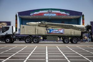 سومار:[371][372][373][374] هو صاروخ بري جوال[11][12][13] بعيد المدى قادر على حمل رؤوس نووية.[375][376][377] يعمل بالوقود الصلب، والذي يمثل بدايةً ناجحة للصواريخ الإيرانية الجوالة، ويُعَد من أهم وأخطر ما توصل إليه الخبراء الإيرانيون في هذا المضمار،[378] خاصةً أنه صاروخ بعيد المدى ويتراوح مداه من (2500-3000) كيلومتر، وهو أحد أجيال الصواريخ الباليستية کروز. وهو أشبه بصاروخ (خا – 55) السوفيتي فإنه قد يتمكن من استهداف مرماه ليس فقط في منطقة الشرق الأوسط فحسب، بل أيضاً في جنوبي وشرقي أوروبا،[379][380] ويُعتبَر سومار جيل جديد من الصواريخ الباليستية كروز الإيرانية، ومُصّنَع بخبرات متخصصين في مؤسسة الصناعات الدفاعية الإيرانية.[381][382][383] أُزيحَ الستار عن هذا الصاروخ في 9 مارس 2015م بواسطة العميد حسين دهقان وزير الدفاع الإيراني. وقد اختبرته جمهورية إيران بنجاح عام 2017م،[384] بحسب ما نقلت صحيفة «دي فيلت» الألمانية يوم 2 فبراير/شباط 2017م عن مصادر مخابراتية لم تسمها. وصاروخ «سومار» جرى تصنيعه في إيران وحلق لنحو 600 كيلومتر في أول اختبار ناجح مُعلَن لإطلاقه. ونقلت الصحيفة عن مصادر مخابراتية قولها إن الصاروخ قادر على حمل أسلحة نووية ويمكن أن يتراوح مداه بين 2000 و3000 كيلومتر. يُذكَذ أن إمكانية صد صواريخ كروز أصعب مقارنةً بالصواريخ الباليستية، حيث إنها تُحّلِق على مستويات منخفضة ربما لا تلتقطها أنظمة الرادار مما يُربِك أنظمة الدفاع الصاروخية، كما أن بإمكان كروز ضرب أهداف في عمق أراضي الخصم.[385][386][387][388] ويمتلك صاروخ سومار إمكانات متميزة عن بقية الصّواريخ خصوصاً فيما يتعلّق بأنظمة التّحكّم، هيكل الصّاروخ وأنظمة الدّفع (أو الإطلاق).[389][390][391][392][393] وتجدر الإشارة هنا، إلى أن وزارة الدفاع الإيرانية أطلقت على هذا الصاروخ اسم سومار استشهاداً بمنطقة عمليات عسكرية شهيرة إبان حرب الخليج الأولى.[394][395]