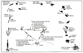 ![]() Artist impression of a Viking orbiter releasing a lander descent capsule | |