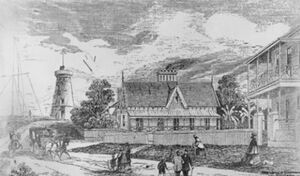 Between 1824 and 1842, almost 2,400 men and 145 women were detained at the Moreton Bay convict settlement under the control of military commandants.[59] However, non-convict European settlement of the Brisbane region commenced in 1838 and the population grew strongly thereafter, with free settlers soon far outstripping the convict population.[60] German missionaries settled at Zions Hill, Nundah as early as 1837, five years before Brisbane was officially declared a free settlement. The band consisted of ministers Christopher Eipper (1813–1894), Carl Wilhelm Schmidt, and lay missionaries Haussmann, Johann Gottried Wagner, Niquet, Hartenstein, Zillman, Franz, Rode, Doege and Schneider.[61] They were allocated 260 hectares and set about establishing the mission, which became known as the German Station.[62] Later in the 1860s many German immigrants from the Uckermark region in Prussia as well as from other German regions settled in the areas of Bethania, Beenleigh and the Darling Downs. These immigrants were selected and assisted through immigration programs established by Rev Dr John Dunmore Lang and Johann Christian Heussler and were offered free passage, good wages, and selections of land.[63][64]