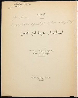 - «اصطلاحات عربية لفن: التصوير» رسالة صغيرة.