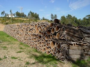 The cork oak is grown for the production of cork in several Mediterranean countries. The centers of cork production are in southern Portugal (accounting for 50% of the total production[10]) and southern Spain, where low trees with large crowns and strong branches are grown in large areas, which provide the highest yield of cork.[17] These mostly extensively managed habitats are called montados in Portugal and dehesas in Spain.[18] They are considered to be extremely valuable from the point of view of biodiversity and cultural heritage.[19]