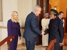 السلطان قابوس بن سعيد يستقبل رئيس الوزراء الإسرائيلي بنيامين نتنياهو وزوجته سارة في بيت البركة في مسقط، 25 أكتوبر 2018.
