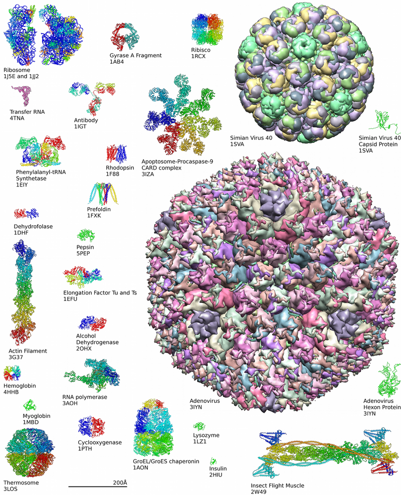 أمثلة على تركيبات الپروتين من بنك بيانات الپروتين.