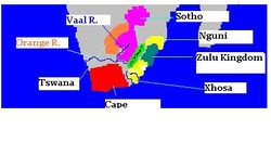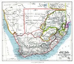 الخريطة السياسية لأفريقيا الجنوبية عام 1885.