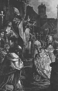 - ^ "it [the race of the Turks] has led away a part of the captives into its own country, and a part it has destroyed by cruel tortures; it has either entirely destroyed the churches of God or appropriated them for the rites of its own religion. They destroy the altars, after having defiled them with their uncleanness. They circumcise the Christians, and the blood of the circumcision they either spread upon the altars or pour into the vases of the baptismal font. When they wish to torture people by a base death, they perforate their navels, and dragging forth the extremity of the intestines, bind it to a stake; then with flogging they lead the victim around until the viscera having gushed forth the victim falls prostrate upon the ground. Others they bind to a post and pierce with arrows. Others they compel to extend their necks and then, attacking them with naked swords, attempt to cut through the neck with a single blow. What shall I say of the abominable rape of the women? To speak of it is worse than to be silent." Madden, Thomas. The Concise History of the Crusades. Rowman & Littlefield. p. 264. ISBN 9781442215740.