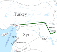 مع محدودية وصول العراق للخليج العربي، اعتمد العراق بشكل كبير على تركيا كممر لتصدير النفط الخام. وقد موّل العراق خطي أنابيب متجاورين من حقول كركوك الشمالية إلى ميناء يمرطالق التركي على البحر المتوسط، إلى الشمال الغربي مباشرة من الإسكندرونة. القدرة الإجمالية لخطي الأنابيب كانت 1.1 million barrels per day (170،000 m3/d) (برميل/يوم). ولم تحصل تركيا فقط على جزء من احتياجاتها النفطية من خط الأنابيب، بل كانت تحصل على رسم عبور معتبر. قدرت بعض المصادر رسومه ما بين 300 مليون دولار إلى 500 مليون دولار.