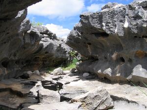The primitive peoples in Rio Grande do Norte left traces scattered throughout the territory. Some sites present incised rock inscriptions, like the one discovered in Serra Negra do Norte, at the Umburana farm. In other places, incised inscriptions followed by paintings are found, such as in the Lajedo de Soledade, in Apodi.[3] The meaning of these rock inscriptions is still debated; the most accepted one states that those inscriptions and drawings had as main purpose to convey a message, as a communication tool, using a kind of writing different from the current one.[4]