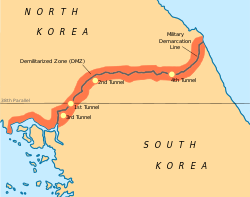 بناء على اتفاق مشترك بين الولايات المتحدة الأمريكية والاتحاد السوڤييتي السابق تمركزت القوات الأمريكية في الجزء الجنوبي (كوريا الجنوبية). وأُسست جمهورية كوريا الديمقراطية الشعبية عام 1948، نتيجة استفتاء شعبي طالب بتوحيد كوريا وخروج القوات الأجنبية منها.