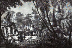 Anouvong’s forces pushed south eventually to Saraburi to free the Lao there, but the flood of refugees pushing north slowed the armies’ retreat. Anouvong also severely underestimated the Siamese arms stockpile, which under the terms of Burney Treaty had provided Siam with weaponry from the Napoleonic Wars in Europe. A Lao defense was staged at Nong Bua Lamphu the traditional Lao stronghold in the Isan, but the Siamese emerged victorious and leveled the city. The Siamese pushed north to take Vientiane and Anouvong fled southeast to the border with Vietnam. By 1828 Anouvong had been captured, tortured and sent to Bangkok with his family to die in a cage. Rama III ordered Chao Bodin to return and level the city of Vientiane, and forcibly move the entire population of the former Lao capital to the Isan region.[12][13]