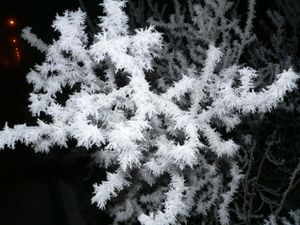 - أشكال الثليج السداسية الشكل والتي تتكون على الأسطح المستوية الباردة في وجود بخار الماء.