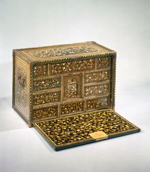 A maki-e and mother-of-pearl inlay cabinet that was exported from Japan to Europe in the 16th century. Metropolitan Museum of Art