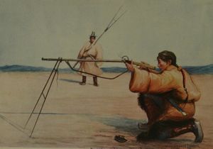 جندي تبتي يتدرب على الرماية باستخدام بندقية الثقاب Matchlock