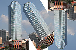 بعض برامج محررات الرسوميات تسمح للمستخدم بإلتفاف (أو "تحويل وإلتواء") إنگليزية: distort شكل الصورة. وفي حين أن هذا قد يكون مفيدا للتأثيرات الخاصّة، فهو أيضاً يعتبر الطريقة المفضلة لتصحيح ميلان المنظور perspective -الذي ينتج عادة في الصور التي يتم إلتقاطها بزاوية مائلة- إلى وضع مستقيم rectilinear. ولابد من الحرص أثناء تنفيذ هذه المهمة، لأن الصورة يتم إعادة معالجتها باستخدام الاستيفاء إنگليزية: interpolation من البكسل المجاور ، الذي قد يقلل من درجة النقاءإنگليزية: definitionالعام للصورة. هذا التأثير يحاكي استخدام عدسة التحكم بالمنظور إنگليزية: perspective control lensفي آلة التصوير،الذي يحقق نفس التعديل من دون خسارة نقاء الصورة.