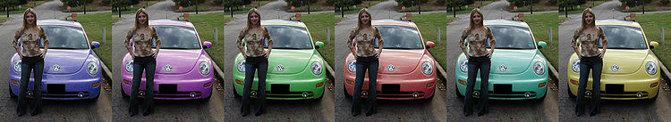 بعض برامج محررات الصور لديها خاصية تبديل وتغيير لون عنصر محدد في الصورة إلى لون آخر يتم اختياره, مع مراعاة ان هذا اللون المنتقى يجب أن يكون من ضمن مجموعة محددة من الألوان.
