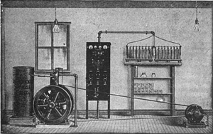 Battery storage was used in the early days of direct current electric power. Where AC grid power was not readily available, isolated lighting plants run by wind turbines or internal combustion engines provided lighting and power to small motors. The battery system could be used to run the load without starting the engine or when the wind was calm. A bank of lead-acid batteries in glass jars both supplied power to illuminate lamps, as well as to start an engine to recharge the batteries. Battery storage technology is typically around 80% to more than 90% efficient for newer lithium ion devices such as the Tesla Powerwall.[20][21]