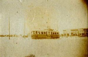 Tramways on ice of the River Neva in Saint Petersburg, the beginnig of XX century