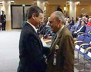 الأمير تركي الفيصل يصافح نائب وزير الخارجية الإسرائيلي في مؤتمر الأمن في ميونخ، 2010.