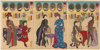 سيدات وفتيات يابانيات يرتدين أزياء غربية ويستخدمن تسريحات غربية، 1 سبتمبر 1887.