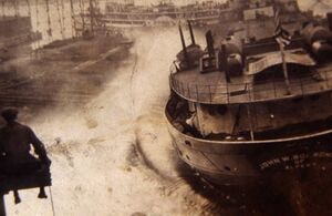 - إتشإمإس Albion launched on 21 June 1898.[16][استشهاد ناقص] Albion created a wave with her entry into the water after the Duchess of York christened her. The wave caused a stage to collapse on which 200 people were watching; it slid into a side creek, and 34 people drowned, mostly women and children.[17][استشهاد ناقص] This was probably one of the first-ever ship launchings to be filmed.[18]