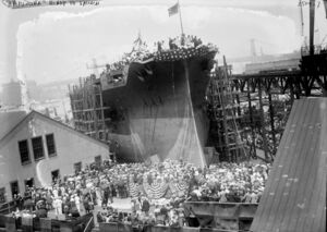 Thousands of ships of every description came off the ways during World War II, the concerted effort of a mobilized American industry. The historic christening and launching ceremonies continued, but travel restrictions, other wartime considerations, and sheer numbers dictated that such occasions be less elaborate than those in the years before the war.[2]