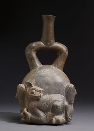 Chavín Feline-and-Cactus Stirrup Vessel, Horizon/Early Intermediate