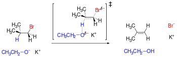 The mechanism requires that the departing atoms or groups follow antiparallel trajectories. For open chain substrates this geometric prerequisite is met by at least one of the three staggered conformers. For some cyclic substrates such as cyclohexane, however, an antiparallel arrangement may not be attainable depending on the substituents which might set a conformational lock.[17] Adjacent substituents on a cyclohexane ring can achieve antiperiplanarity only when they occupy trans diaxial positions (that is, both are in axial position, one going up and one going down). [بحاجة لمصدر]