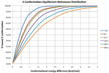 The fractional population distribution of different conformers follows a Boltzmann distribution:[6]